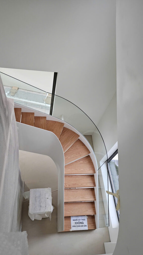 Cầu thang kính cong Gia Thái – Điểm nhấn hoàn mỹ cho biệt thự Vinhomes Riverside Long Biên