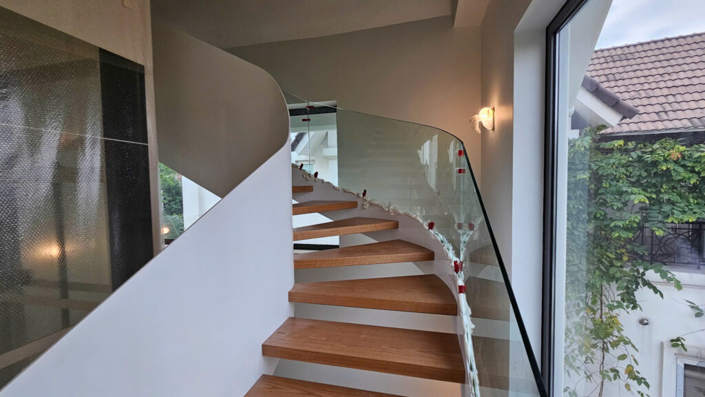 Cầu thang kính cong Gia Thái – Sự lựa chọn hoàn hảo cho không gian sống đẳng cấp.